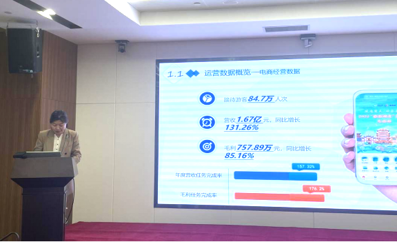 羅圓作題為《銳意改革 大膽創(chuàng)新 奮力打造新型數(shù)字文旅綜合服務(wù)商》的工作報(bào)告。她指出,2022年面對(duì)疫情反復(fù)、艱巨繁重的發(fā)展任務(wù),公司迎難而上,全年任務(wù)圓滿(mǎn)完成,經(jīng)營(yíng)指標(biāo)再創(chuàng)新高。扎實(shí)穩(wěn)住經(jīng)營(yíng)大盤(pán),持續(xù)深耕平臺(tái)運(yùn)營(yíng),推動(dòng)智慧文旅建設(shè),探索數(shù)據(jù)增值服務(wù)。推進(jìn)資源要素整合,探明政府端合作共建模式,爭(zhēng)取“惠游湖北”消費(fèi)券發(fā)放,構(gòu)建文旅區(qū)域資源生態(tài)圈,提升融資稅務(wù)策劃能力。抓好運(yùn)營(yíng)擴(kuò)大體量,擦亮營(yíng)銷(xiāo)品牌,開(kāi)展異業(yè)合作,打造新媒體傳播矩陣,建立大會(huì)員體系。強(qiáng)化提升管理水平,加大項(xiàng)目督辦力度,優(yōu)化薪酬績(jī)效考核,提高內(nèi)控管理水平。持續(xù)釋放改革活力,把深化改革作為推動(dòng)高質(zhì)量發(fā)展的強(qiáng)大引擎,在科技創(chuàng)新、資質(zhì)申報(bào)、人才引育提智等方面發(fā)力,全方位提升了公司創(chuàng)新求變能力??茖W(xué)統(tǒng)籌安全生產(chǎn),緊抓生產(chǎn)安全、廉潔安全。塑造優(yōu)秀企業(yè)文化,選舉產(chǎn)生數(shù)旅集團(tuán)第一屆工會(huì),發(fā)揮聯(lián)系職工群眾的橋梁和紐帶作用,推進(jìn)民主管理、職工素質(zhì)、生產(chǎn)經(jīng)營(yíng)提升。