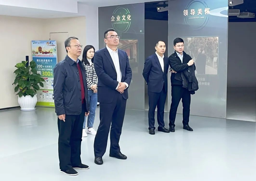 吳宏建一行還參觀考察了湖北文旅集團(tuán)數(shù)字展廳以及“一部手機(jī)游湖北”全域智慧文旅綜合服務(wù)平臺(tái)。數(shù)旅集團(tuán)副總經(jīng)理樊后濤陪同考察。