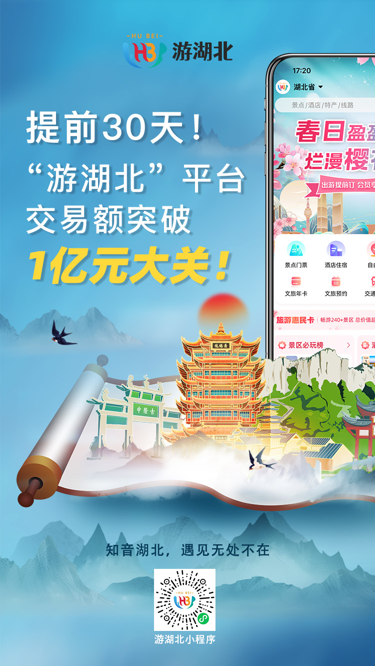 游湖北平臺(tái)已貫通跨省級(jí)文旅集團(tuán)、多家異業(yè)合作,平臺(tái)交易額增長迅速,離不開廣大用戶的支持和信任。未來,平臺(tái)將不斷優(yōu)化功能,豐富文旅產(chǎn)品供給,推出惠民活動(dòng),滿足游客多樣化的旅游需求,提升整體服務(wù)質(zhì)量,助力湖北省文旅產(chǎn)業(yè)高質(zhì)量發(fā)展。