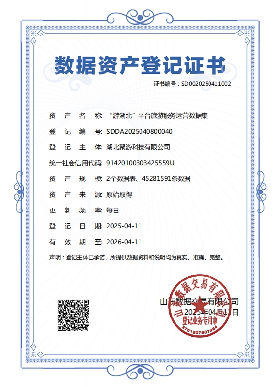 近日,湖北數(shù)字文旅集團(tuán)旗下聚游科技公司在數(shù)據(jù)資產(chǎn)化領(lǐng)域傳來(lái)捷報(bào)。4月11日,其研發(fā)的"游湖北平臺(tái)旅游服務(wù)運(yùn)營(yíng)數(shù)據(jù)集"成功取得數(shù)據(jù)資產(chǎn)登記認(rèn)證。