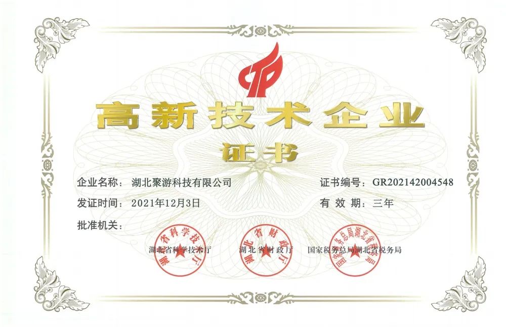 聚游科技獲得全國高新技術(shù)企業(yè)認(rèn)定