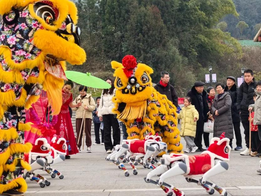科技過年,機(jī)器狗成新春“網(wǎng)紅”。正月初一至元宵節(jié),數(shù)旅集團(tuán)聯(lián)合恩施大峽谷推出的“機(jī)器狗”春節(jié)舞蹈隊將在景區(qū)開展迎賓、舞蹈一條龍服務(wù)。機(jī)器狗舞蹈隊展示迎賓舞蹈、參與舞獅互動、太空步融合土家擺手舞,科技感和民俗范在峽谷山水間擦出火花。為游客帶來全新的游覽體驗,增添節(jié)日樂趣,提升景區(qū)的服務(wù)質(zhì)量和吸引力。
