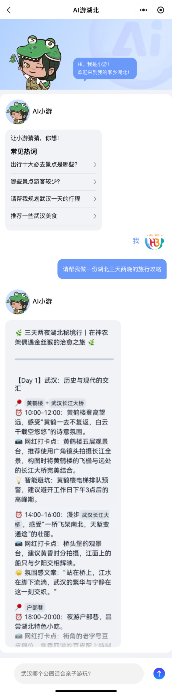 接入DeepSeek,湖北文旅集團實現(xiàn)人工智能技術(shù)深度應用重大突破。在湖北文旅集團數(shù)智化戰(zhàn)略的驅(qū)動下,數(shù)旅集團深入推進人工智能技術(shù)深度應用項目。近日,“游湖北”平臺上線“AI游湖北”板塊,無論是行程規(guī)劃、景點介紹,還是實時天氣查詢、景區(qū)客流預警,都能輕松實現(xiàn)。自2024年第四季度項目啟動以來,技術(shù)團隊巧妙借助國產(chǎn)大模型DeepSeek的強大效能,一舉斬獲兩項重大突破:搭建企業(yè)級知識庫系統(tǒng)、完成智能旅游行程助手設(shè)計,為文旅行業(yè)的智能化變革注入了澎湃新動能。未來,數(shù)旅集團將繼續(xù)深化人工智能技術(shù)的應用,探索更多創(chuàng)新場景,推動文旅行業(yè)的數(shù)字化轉(zhuǎn)型,為用戶創(chuàng)造更優(yōu)質(zhì)的智能化服務體驗。