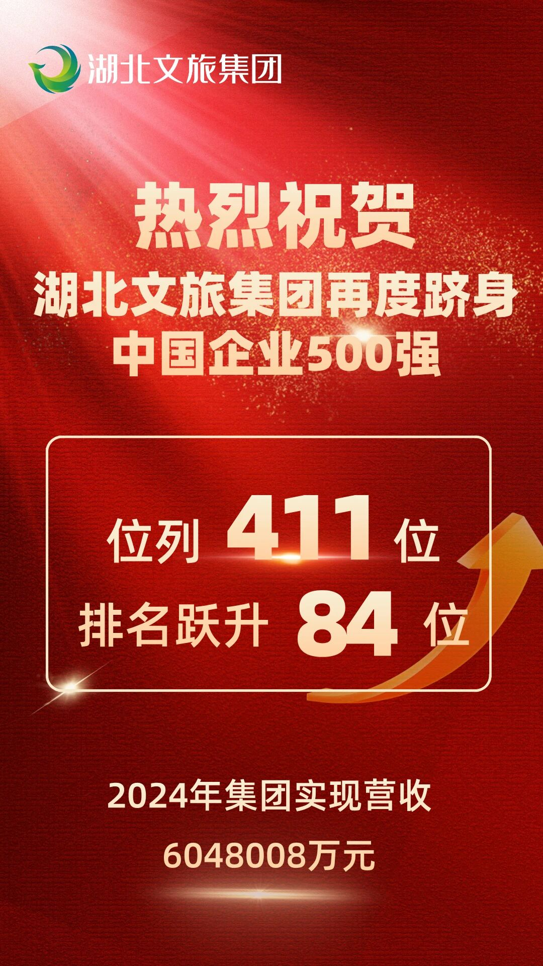 湖北文旅集團(tuán)再入圍中國(guó)企業(yè)500強(qiáng),排名躍升84個(gè)位次。9月15日,中國(guó)企業(yè)聯(lián)合會(huì)、中國(guó)企業(yè)家協(xié)會(huì)連續(xù)第24次向社會(huì)發(fā)布了“中國(guó)企業(yè)500強(qiáng)” (以下簡(jiǎn)稱(chēng)“企業(yè)500強(qiáng)”)榜單。湖北文旅集團(tuán)連續(xù)第二年入圍,排名升至411位,比去年躍升了84個(gè)位次。近年來(lái),集團(tuán)年?duì)I收、經(jīng)營(yíng)性利潤(rùn)均保持20%以上高位增長(zhǎng),特別是2024年集團(tuán)投資、營(yíng)收、接待游客量三個(gè)核心指標(biāo)增長(zhǎng)100%以上,當(dāng)年接待游客量突破3100萬(wàn)人次,總資產(chǎn)達(dá)1000億元。集團(tuán)連續(xù)七年獲評(píng)全國(guó)旅游集團(tuán)20強(qiáng),連續(xù)兩年躋身“中國(guó)企業(yè)500強(qiáng)”。