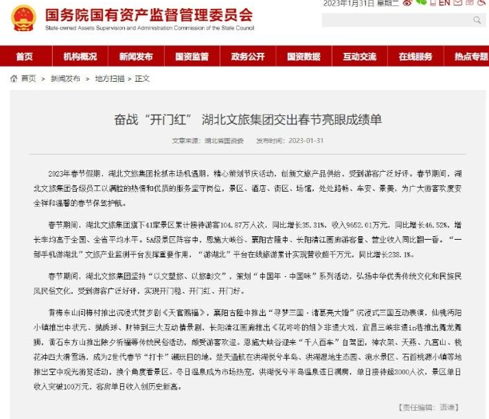 智旅動(dòng)態(tài)周報(bào) 第121期 | 奮戰(zhàn)“開門紅” 湖北文旅集團(tuán)交出春節(jié)亮眼成績(jī)單